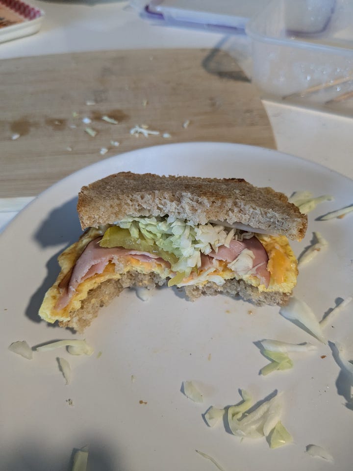 But as iconic as it may be, it's also what prevents many people from successfully recreating the sandwiches at home. You see, my favorite item is the Ham Cheese Special: ham, American cheese, egg, sweet (bread and butter-like) pickles, a mountain of thinly shredded cabbage (only the white parts, by the way), and a healthy slathering of the sauce all between two slices of fluffy, margarine-toasted sandwich bread. I can acquire all the ingredients from any local grocery store, whether that be in Korea or America, except the sauce. Except the thing that brings everything together. Except the ONE thing that makes this the thing that I love most about Korea (again, not kidding).