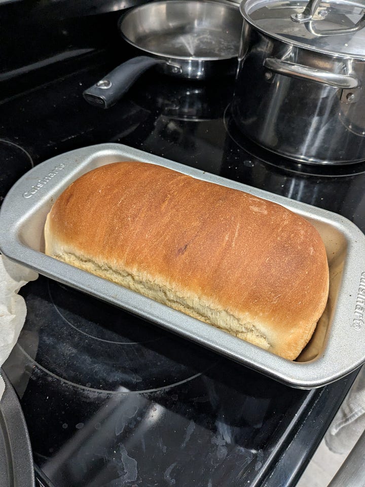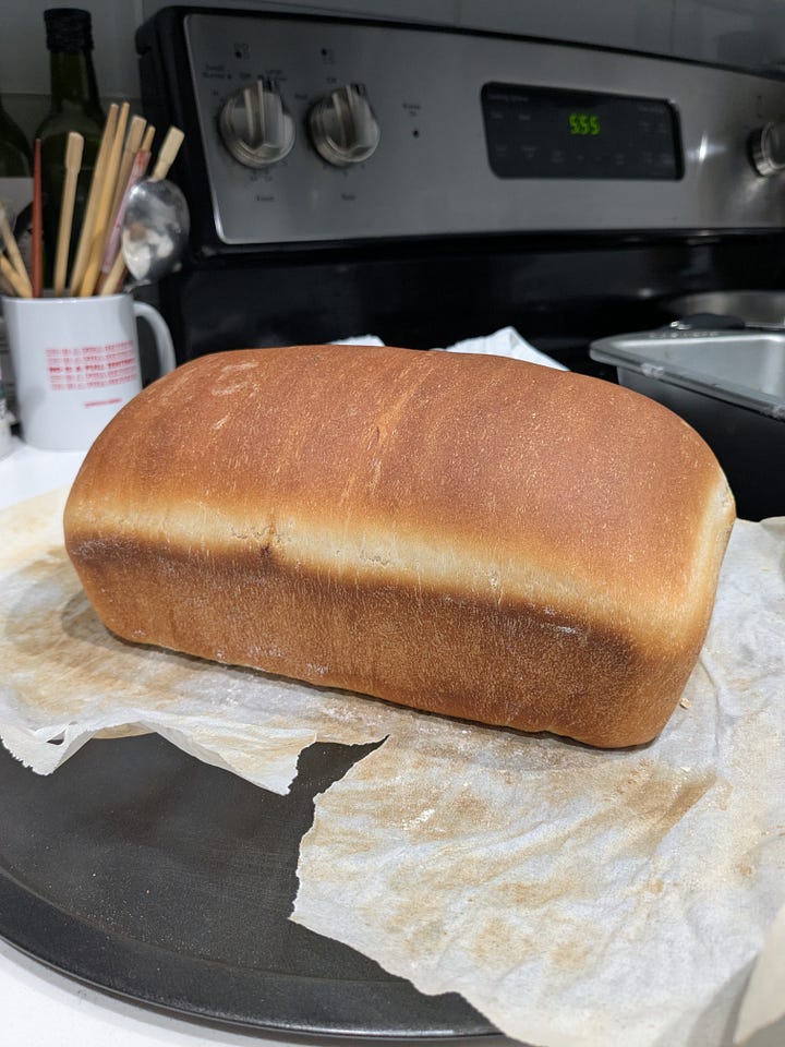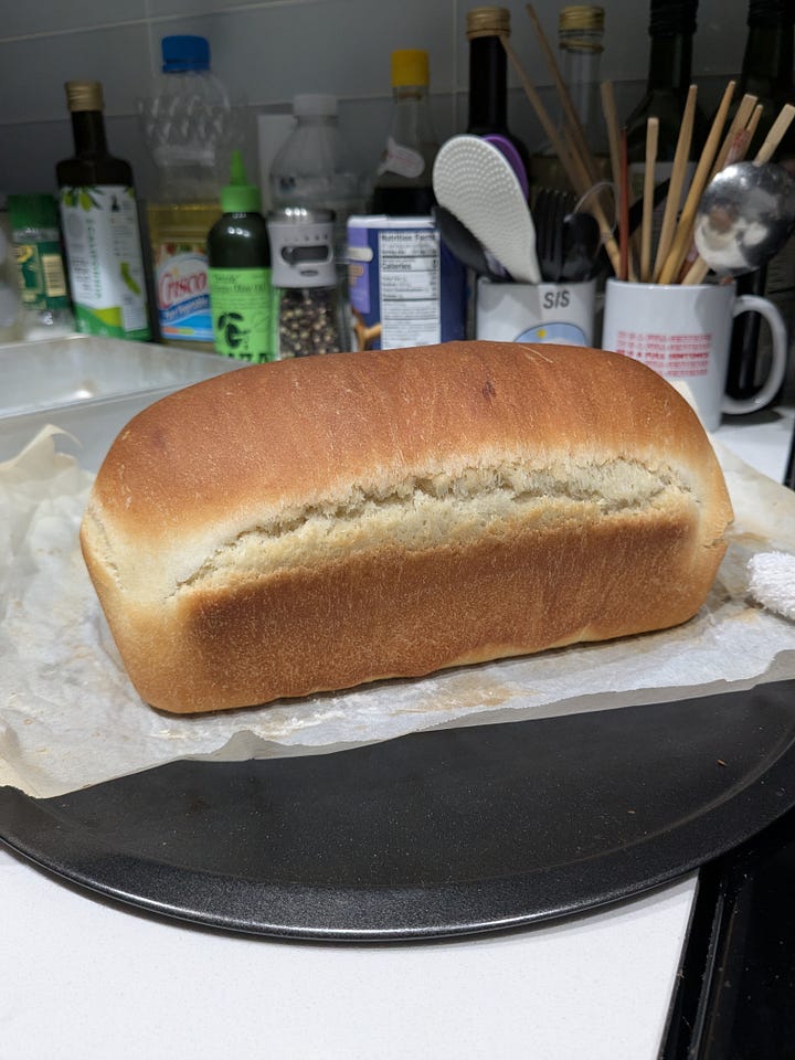 The finished product! I’m not sure why the crack is there—I looked it up and bakers on the internet say that it’s because of underproofing. I did let it proof for ~30 minutes longer than suggested, but it was pretty cold in the apartment this day, so maybe I should’ve let it go for even longer?